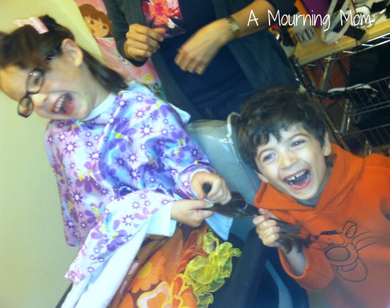 Today was supposed to be another busy day. A school fall festival and a hair cut. I again did not fight the twins when they refused to get dressed to go to their fall festival. They played pretend. I braced myself for the fight I thought I would have with them in order to get them dressed to go out for their hair cuts.