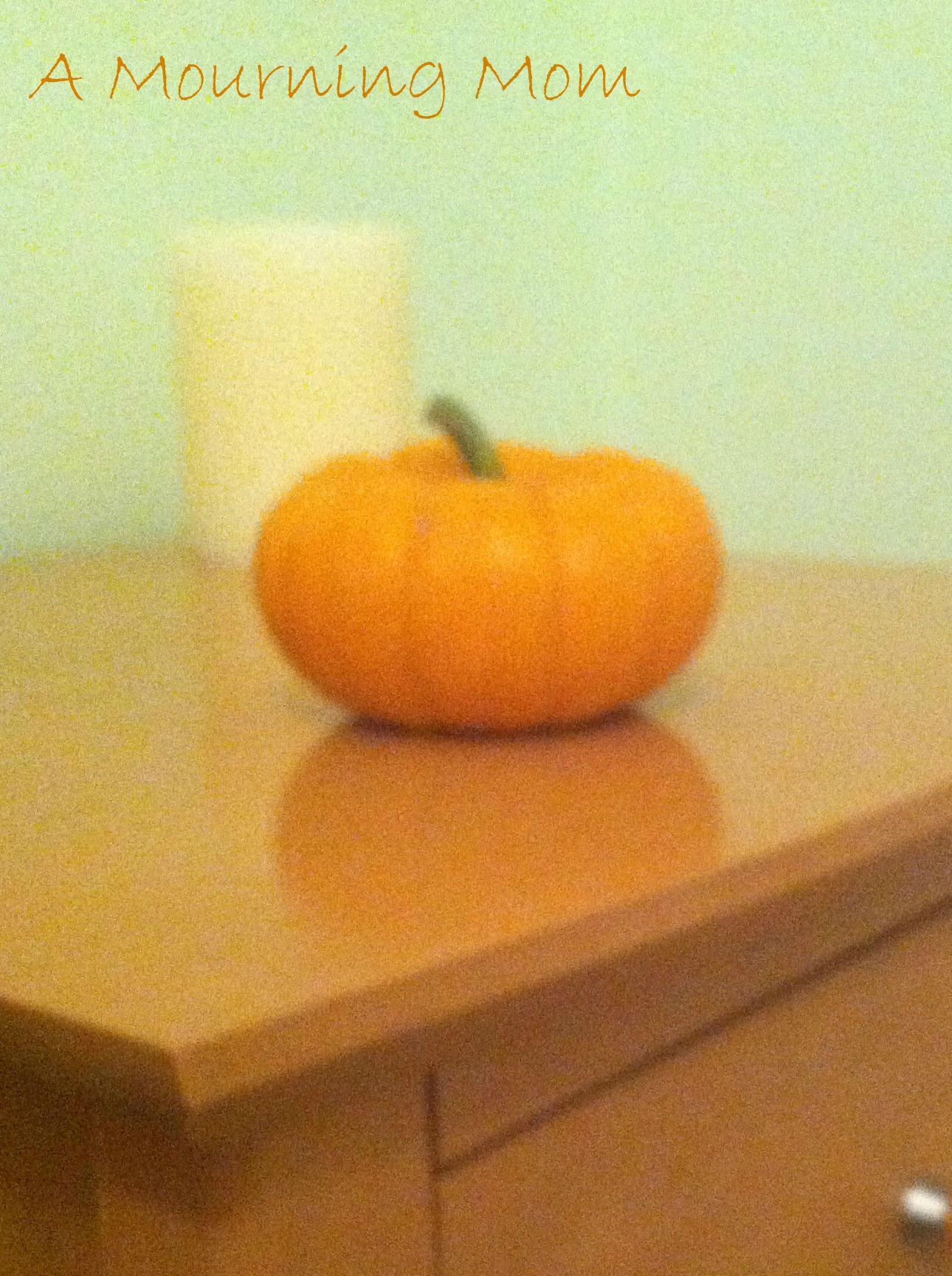 Today we went and picked out 4 mini pumpkins. One for each of the twins. One for Jake. One for Sawyer. I was thinking that I would bring them to the cemetery as I have done in past years. The twins had another idea. They insisted on bringing the pumpkins to Jake and Sawyer’s room. Jake never had a room in our current house. He was born and died 2 years before we moved into our house. Sawyer did have a room. It was the room next to the twins’ room. And, that is where they brought the 2 mini pumpkins.