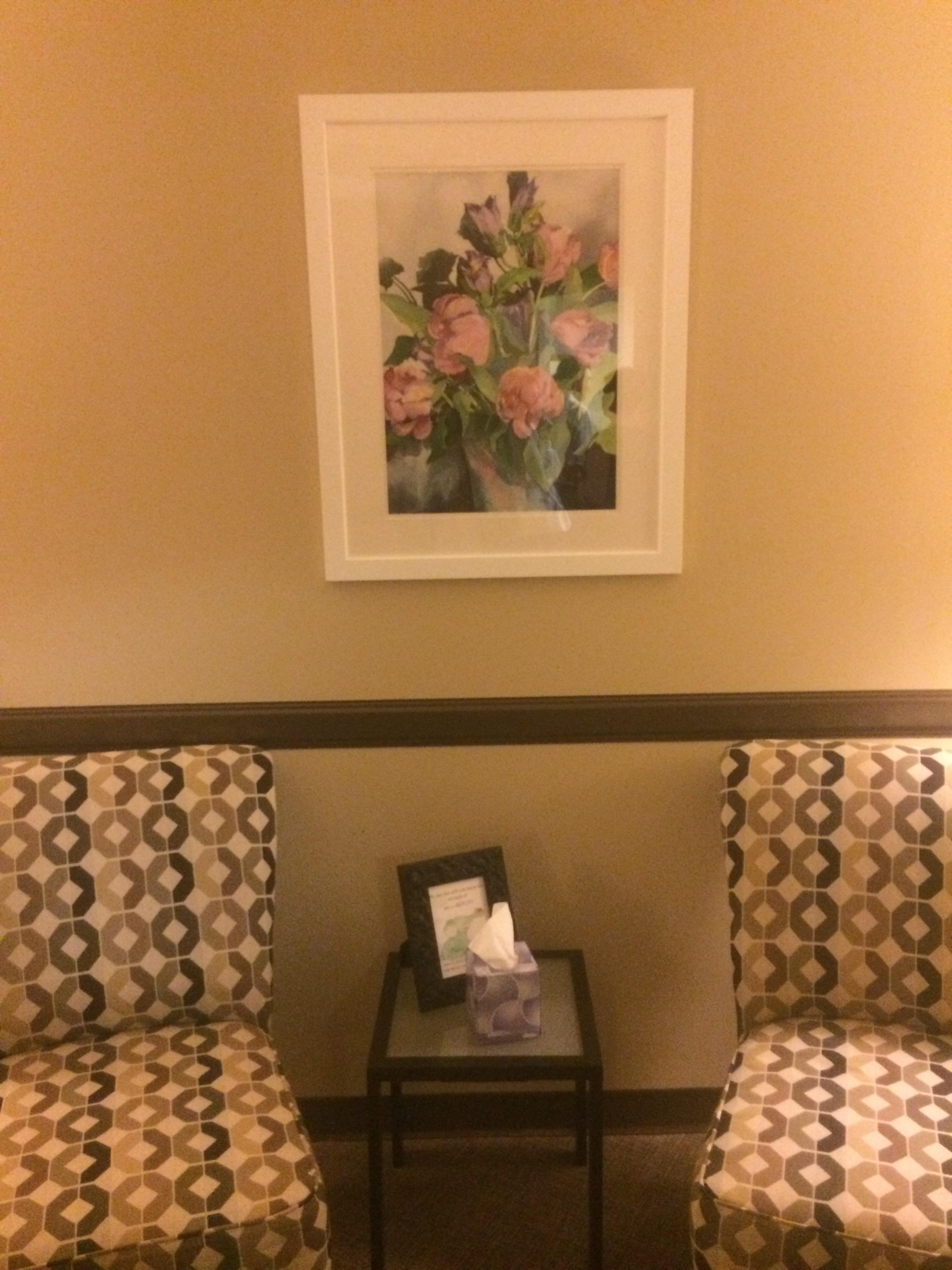 The “consult room” – every hospital has one or several. The “consult room” is where Evan and I held Jake for the last time. It is where we were when the ER doctor told us that Sawyer was dead. They were different “consult rooms,” in different hospitals but they looked the same. Standard issue plastic couch and chair. Generic flowery art. Striped carpet.