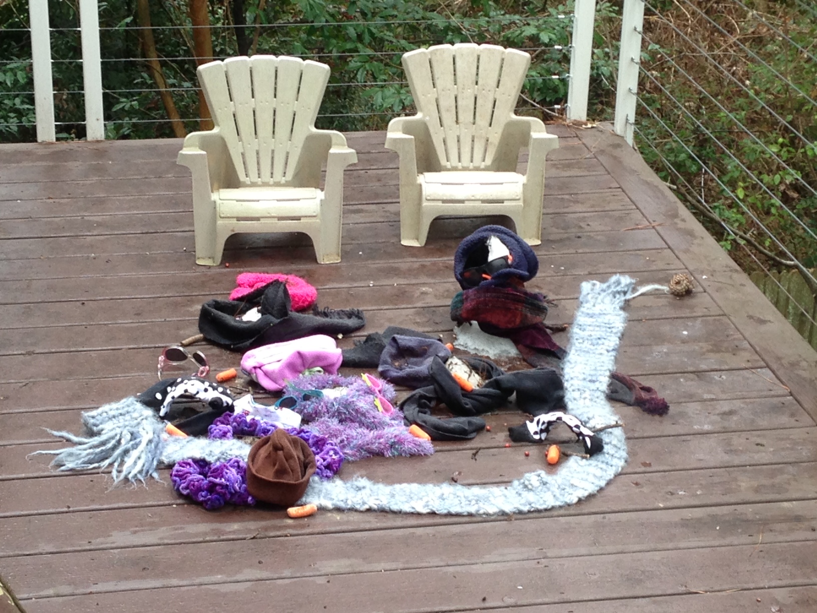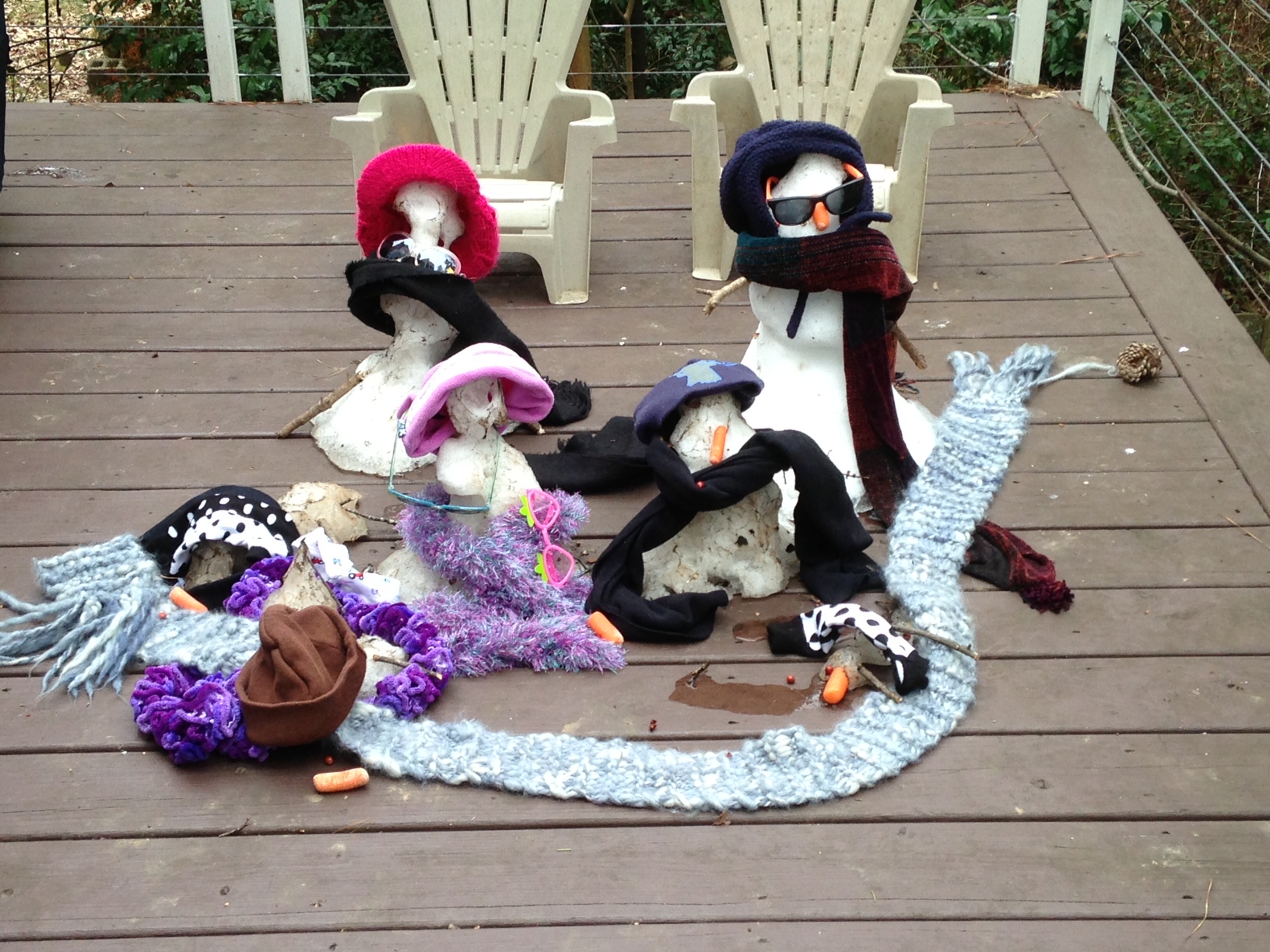 - the twins are the middle-sized snow people (she is wearing a hand me down hat from our niece and he is wearing a cool Star Wars hat from our nephew)